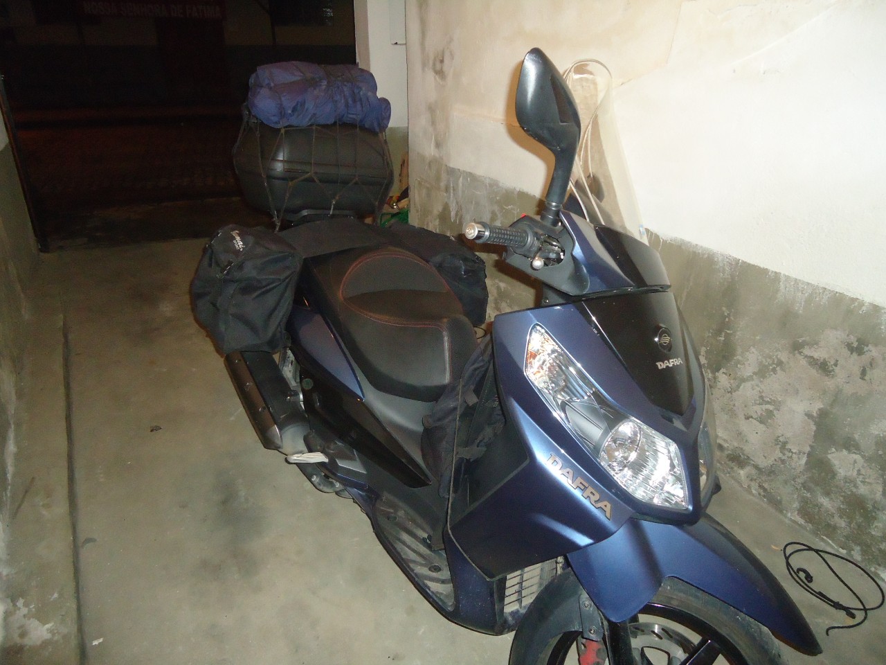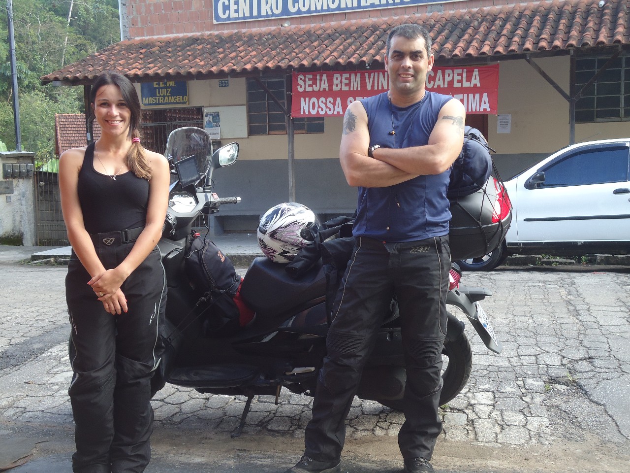 Chegamos lá pela manhã, no horário combinado com o Carlos, responsável pela loja. Fomos muito bem recebidos por ele e sua equipe, que praticamente abriram a loja para nos receber. Informei a ele que a correia trepidava muito em baixas rotações e que gostaria de colocar a suspensão traseira a mais dura possível, em função do peso que transportava. Já nos preparávamos para fazer uma longa caminhada de volta ao hotel, quando ele nos ofereceu uma Riva 150 para passear pela cidade enquanto ele fazia a revisão da Citycom. Eu nem acreditei, acostumado com o atendimento de certas concessionárias. Até agora só tenho elogios a Dafra, pois tanto a revenda de Pelotas como a de Nova Friburgo, foram muito prestativas e cordiais com a gente.