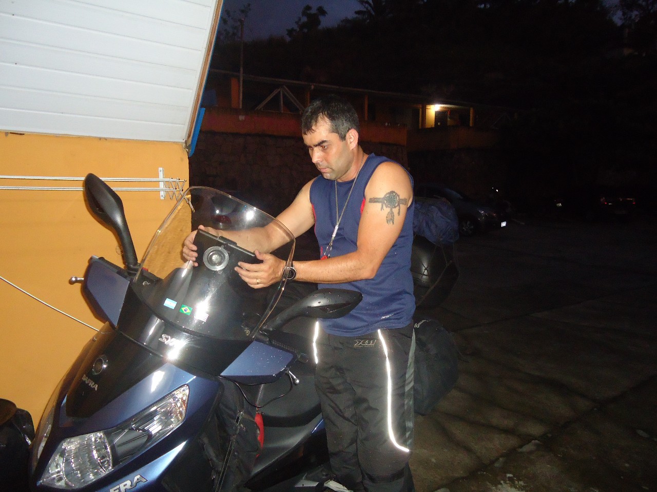 Podemos resumir a 1ª etapa da viagem com a frase acima. Bom, como todos nós sabemos, não adianta fazer planos e traçar roteiros, porque a vida vem e muda tudo. Pois é pessoal, estava programando a saida para as 5 da manhã e que deixaria a moto pronta até as 17;00 h do dia 19 de dez, certo? Não...errado!!! Surgiu uma reunião de emergência as 15:00 h em uma das escolas em que leciono e isso bagunçou tudo. Era para estar na cama as 22 horas e só fomos dormir depois da meia noite, quando tudo ficou pronto e aí, em nome da segurança, remarcarmos a saída para as 8 h, o que acabou virando 8:30 h..hehehehe.