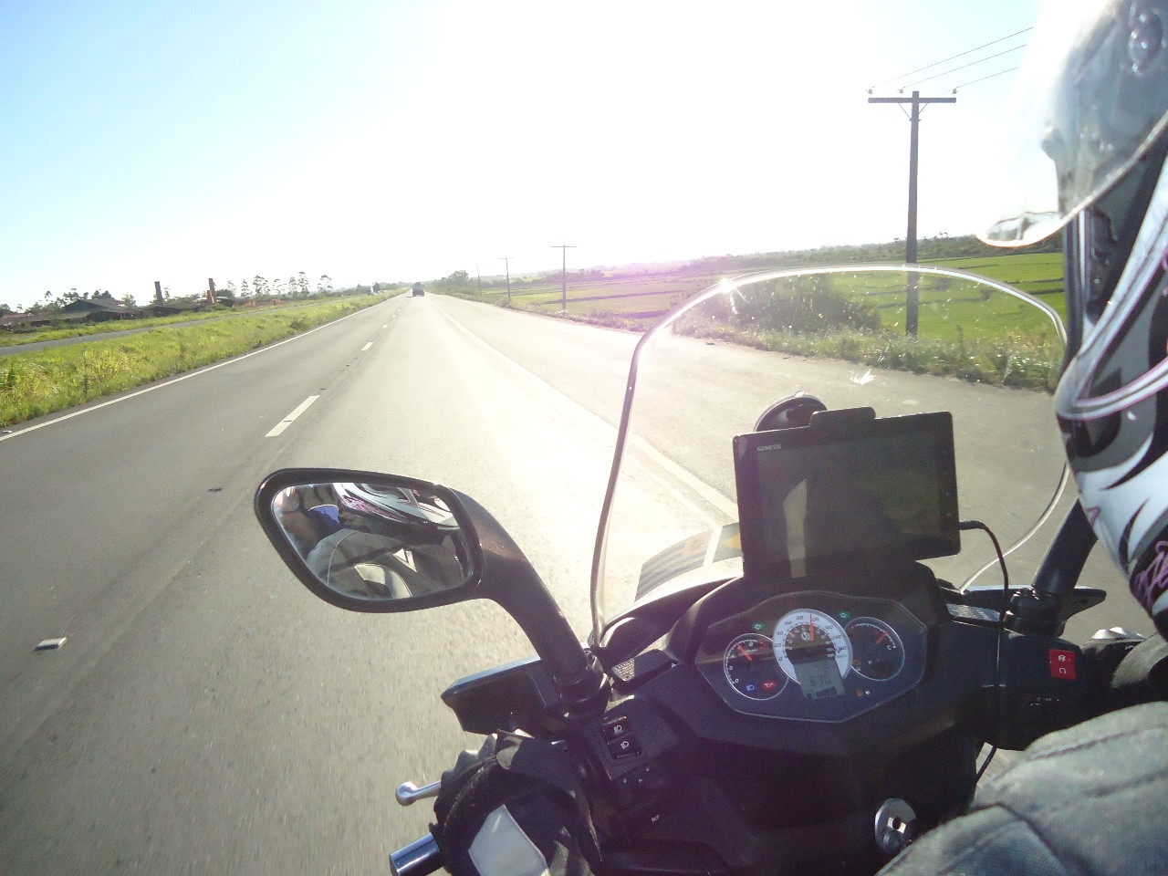 Ontem havíamos percorrido pouco mais de 500 km, o que aumentou a etapa de hoje. Tinha escolhido dormir em Peruíbe-SP, por ser a metade do caminho entre Friburgo-RJ e Floripa, mas o cansaço nos fez parar mais cedo. Resultado? A etapa de hoje ficou quase 200 km maior!!!