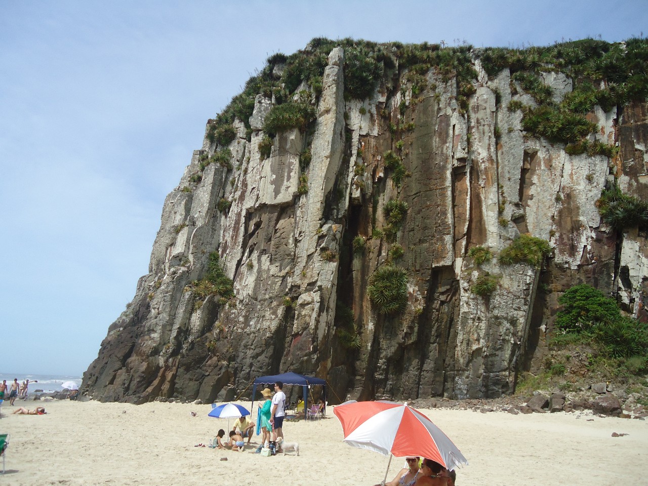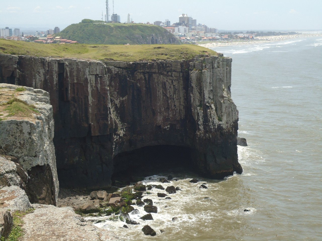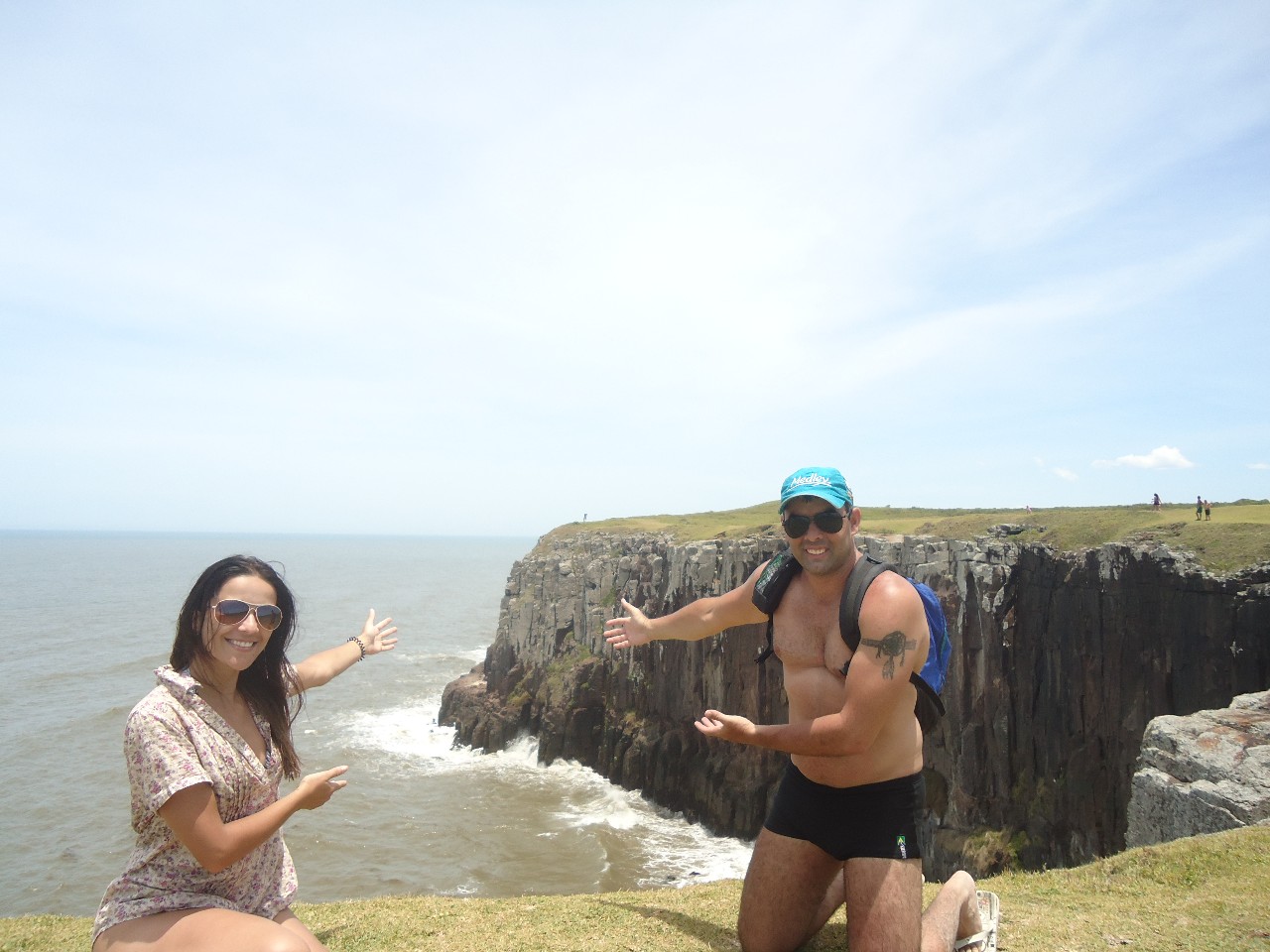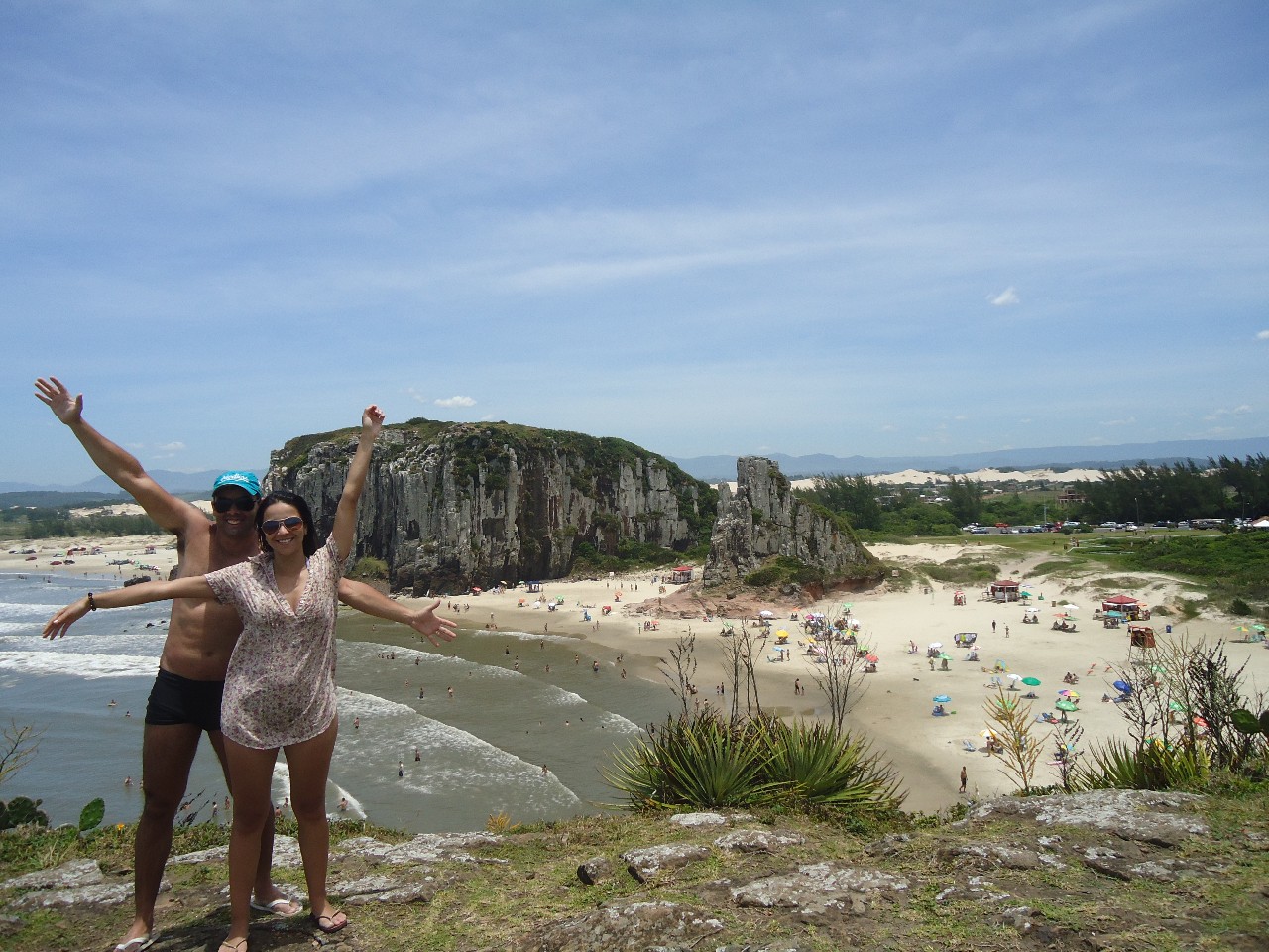 Chegamos em Torres para passar o Natal e conhecer a famosa Praia e Parque da Guarita. O Rio Grande do Sul tem poucas praias bonitas, sendo a Praia da Guarita uma delas. Mas, que praia!! Uau!!! É lindíssima!!!! Costões rochosos que pelo processo de erosão, parecem torres de pedra, daí o nome da cidade. Passamos a manhã inteira na praia e no parque. Neste último, resolvemos fazer uma trilha no alto do platô rochoso. A vista era de arrepiar. Paredões retos de pedra que terminavam no mar, com a formação de cavernas pela ação do mar. De um lado a vista da praia da Guarita e de outro, a vista da praia Grande, da cidade e do morro do Farol, onde a galera decolava de parapente. Muito bonito mesmo.