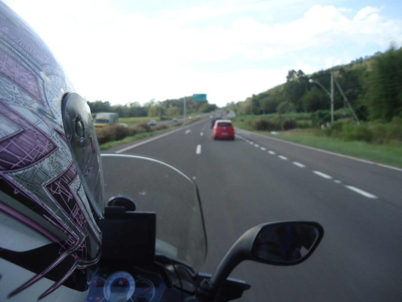 Como sempre faço em viagens de moto, evito almoçar para não dar sono durante a pilotagem, deixando para fazer uma refeição decente somente a noite, e nunca tive problemas com isso. Mas hoje o bicho pegou. Estava fraco, com uma forte dor de cabeça e muiot cansado. Minha vontade era parar no primeiro hotel ou motel. Mas eu sabia que a kilometragem economizada hoje, voltaria com juros e correção na etapa de amanhã, quando iríamos até Floripa.