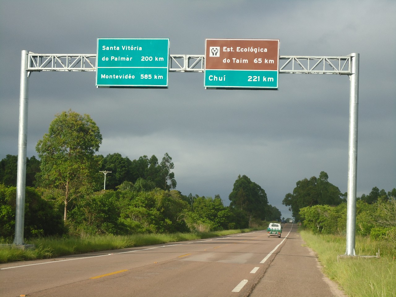 Tomamos café no hotel e paramos no banco para tirar o dinheiro que seria trocado por dólares, pesos uruguaios e argentinos. A temperatura estava agradável e a estrada ótima, duplicada em sua maioria. Ao passarmos por Rio Grande vimos uma placa avisando que o próximo posto só a 100 km. Tranquilo, a City estava com o tanque cheio. Aguardávamos ansiosamente a entrada na reserva do Taim.