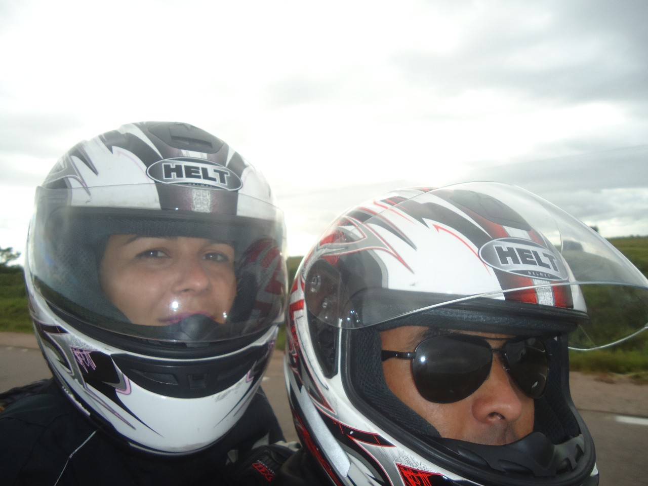 Voltamos à estrada e o sol estava fritando ovo no asfalto e após uns 100 km, o céu ficou preto e desceu aquele pé de água...que coisa boa!!! Uhuu!!! Bom demais, pelo menos até a hora em que ficamos atrás do spray de água das carretas. Nessa hora ví a diferença que faz usar um repelente de água na bolha e viseira do capacete. Perfeito, mesmo assim resolvi parar, pois minha mulher estava precisando visitar o w.c.