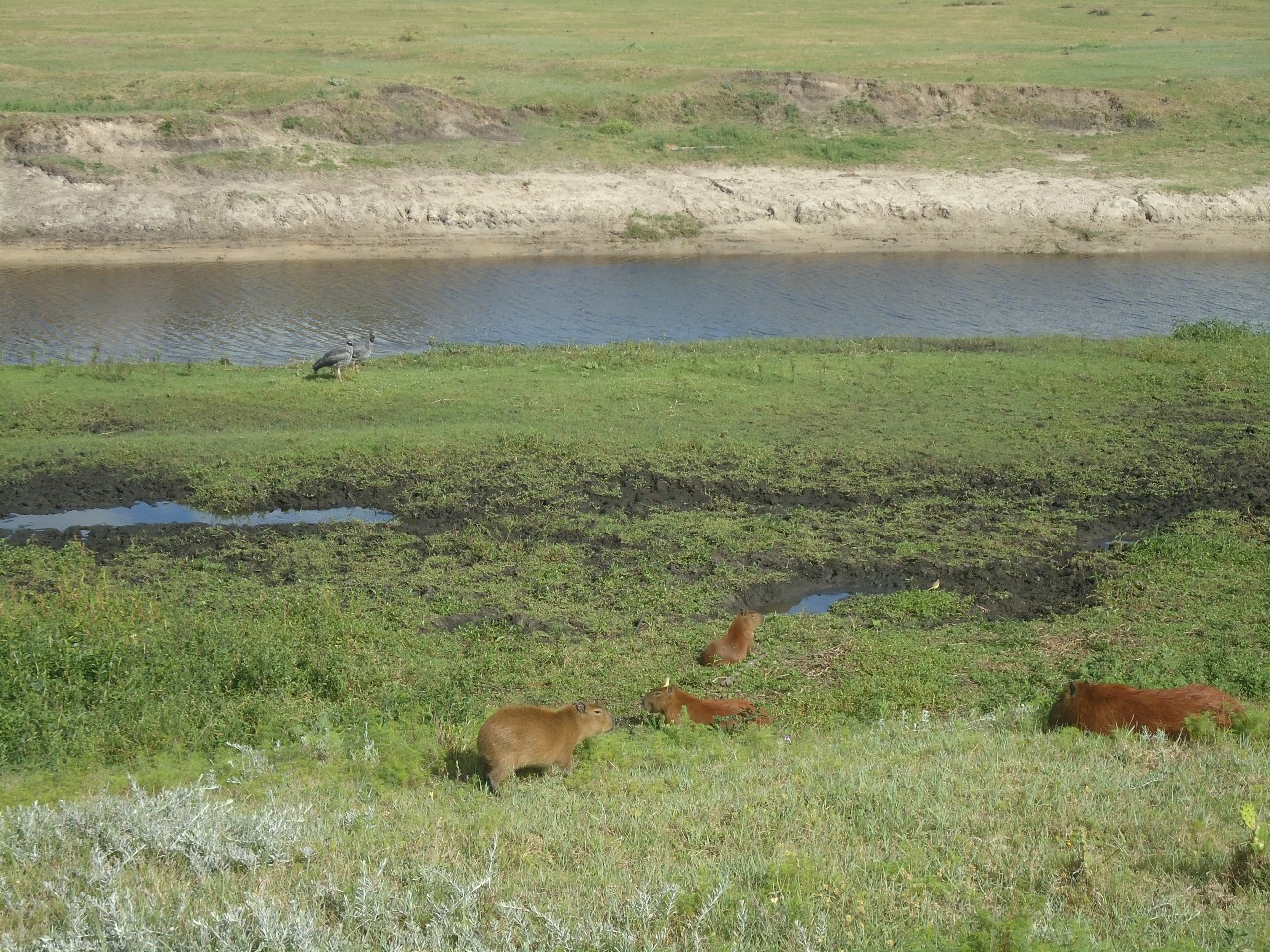 E não decepcionou. Muito bonito com várias capivaras nas margens e muitos pássaros. É um tipo diferente de paisagem, ainda mais para nós que moramos na Suiça Brasileira (Friburgo-RJ), cidade cujas montanhas alcançam 2310 m de altitude. É uma planície com vegetação rasteira e áreas alagadas.
